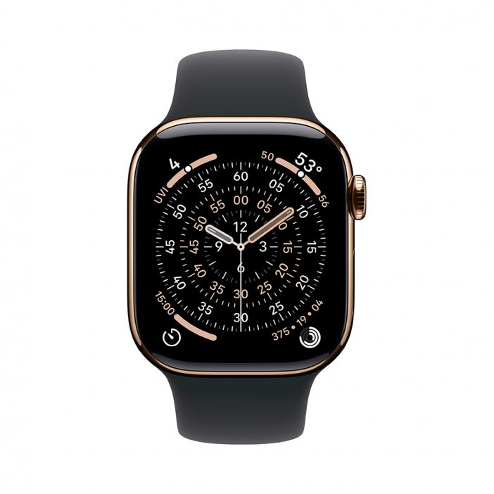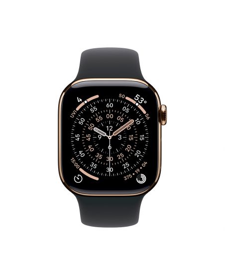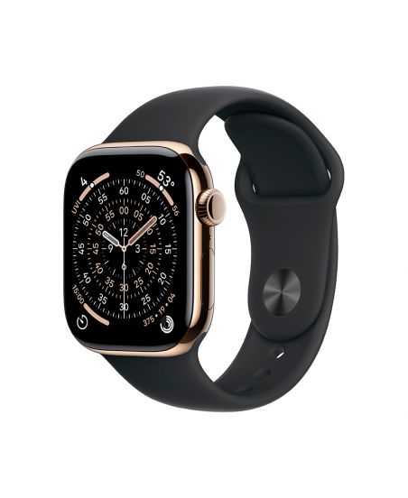 Apple Watch Series 11, 42 mm, Gold Titanium GPS+Cellular, Black Sport Band M/L