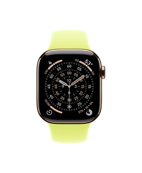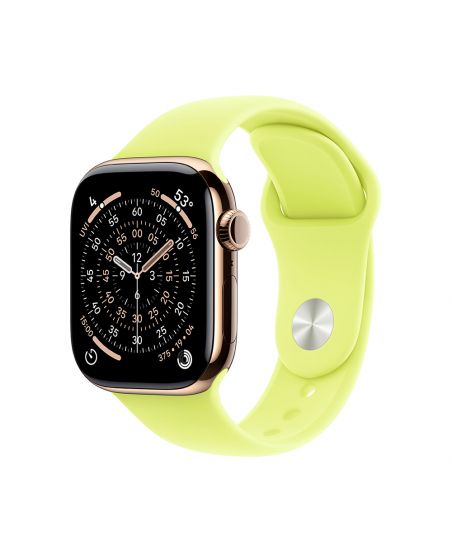 Apple Watch Series 11, 42 mm, Gold Titanium GPS+Cellular, Neon Yellow Sport Band M/L