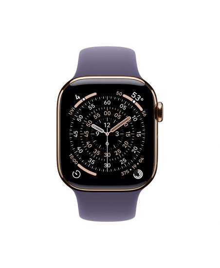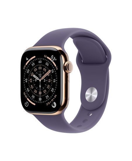 Apple Watch Series 11, 42 mm, Gold Titanium GPS+Cellular, Purple Fog Sport Band S/M