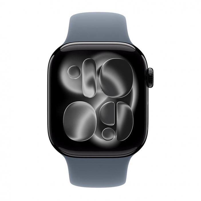 Apple Watch Series 11, 42 mm, Jet Black Aluminum Anchor blue Sport Band S/M
