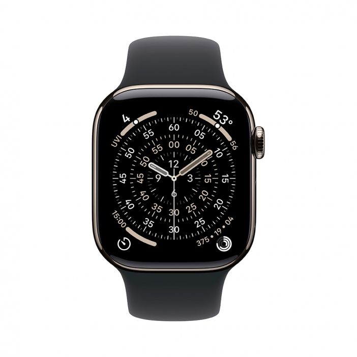 Apple Watch Series 11, 42 mm, Nalural Titanium GPS+Cellular, Black Sport Band S/M
