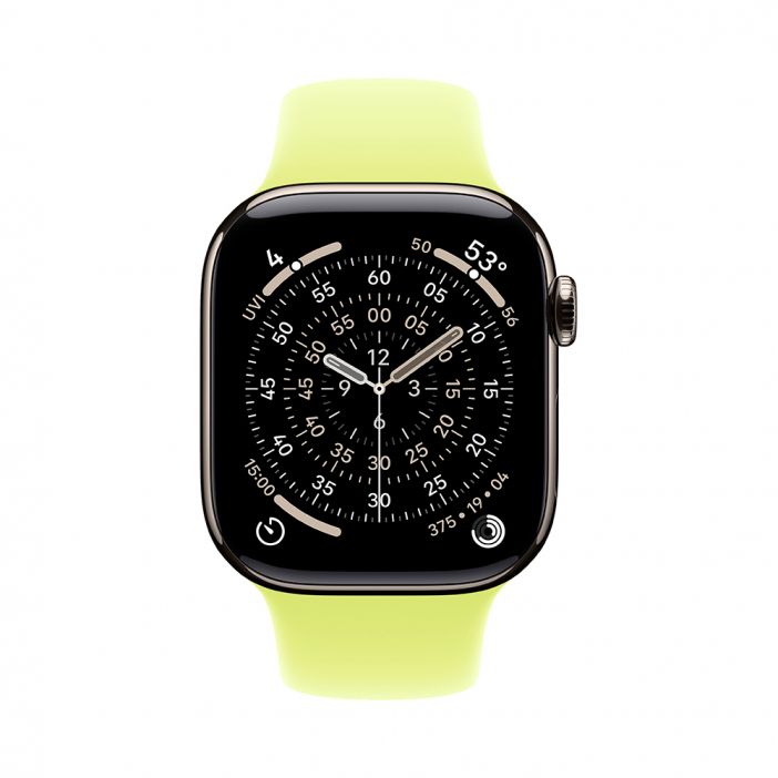 Apple Watch Series 11, 42 mm, Nalural Titanium GPS+Cellular, Neon Yellow Sport Band S/M