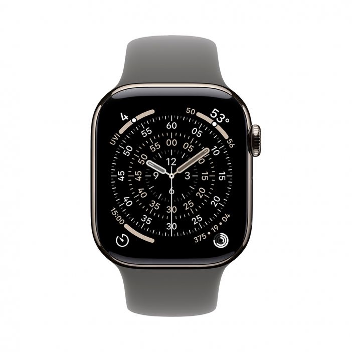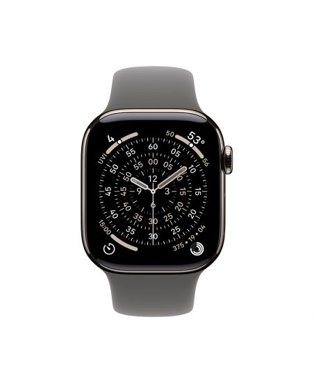 Apple Watch Series 11, 42 mm, Nalural Titanium GPS+Cellular, Stone Gray Sport Band S/M