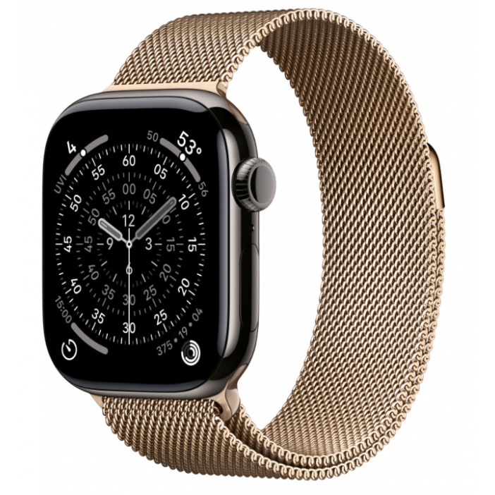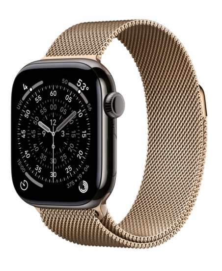 Apple Watch Series 11, 42 mm, Slate Titanium GPS+Cellular, Gold Milanese Loop