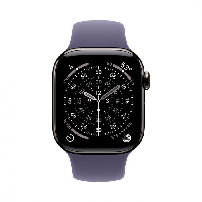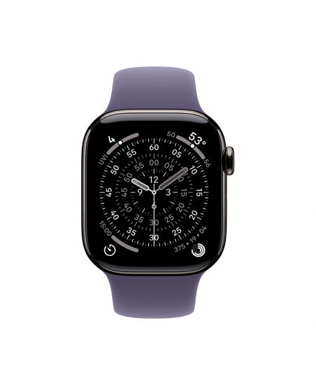 Apple Watch Series 11, 42 mm, Slate Titanium GPS+Cellular, Purple Fog Sport Band S/M