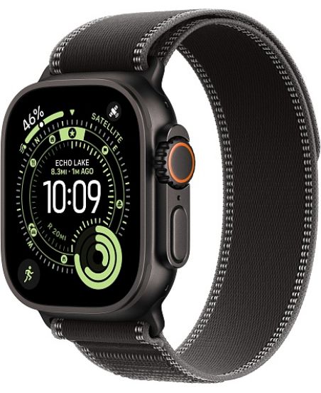 Apple Watch Ultra 3, Black Titanium Case with Black/Charcoal Trail Loop (S/M)