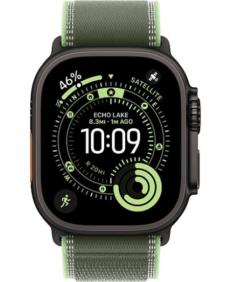 Apple Watch Ultra 3, Black Titanium Case with Green/Neon Trail Loop (M/L)